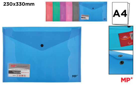 CARPETA SOBRE CON TARJETERO TRANSLUCIDA A4 **(1UD)** **(COLOR ALEATORIO)**